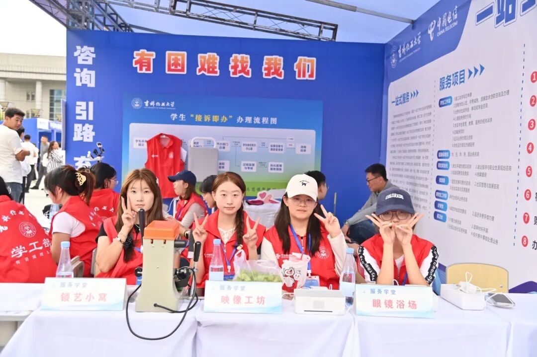 “一站式”学生社区服务站前热闹非凡。“锁艺小窝”“映像工坊”“眼镜浴场”等服务项目有序开展,工作人员热情为新生提供服务和指引,让新生在入校之初便感受到关怀与便利。