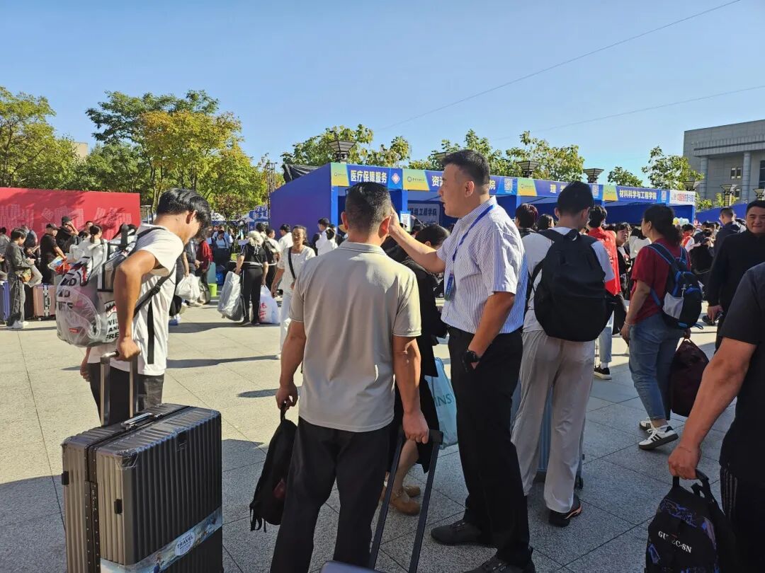 学工部的老师们穿梭在迎新人群中,亲切地与学生家长交流,引导他们到达对应学院迎新位置。一句句暖心的叮嘱,一次次细致的指引,缓解了家长们的担忧,也让新生们更安心地开启大学生活。