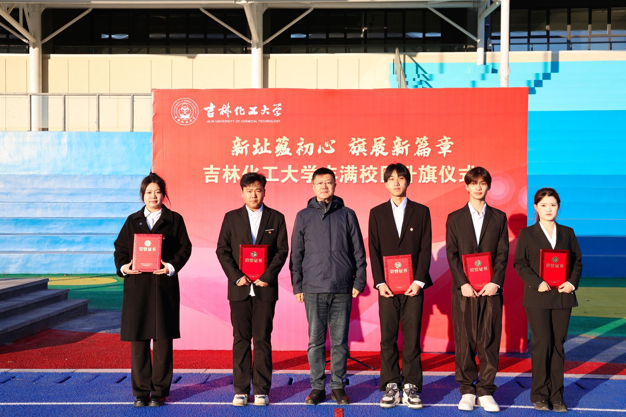 副校长孙大志为在丰满校区搬迁工作中的优秀班集体和学生代表颁发荣誉证书。