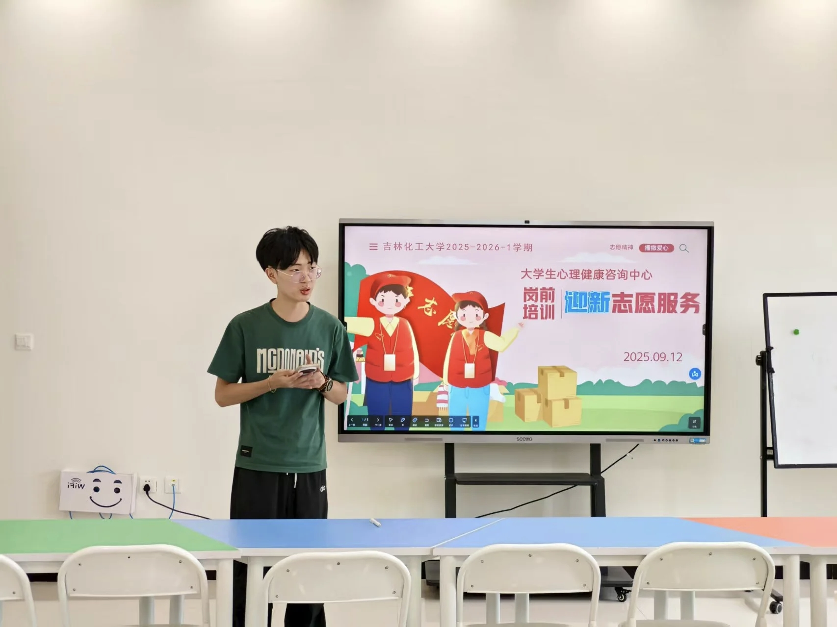 迎新现场青春飞扬,彩虹心理社志愿者团队以专业服务传递温暖: