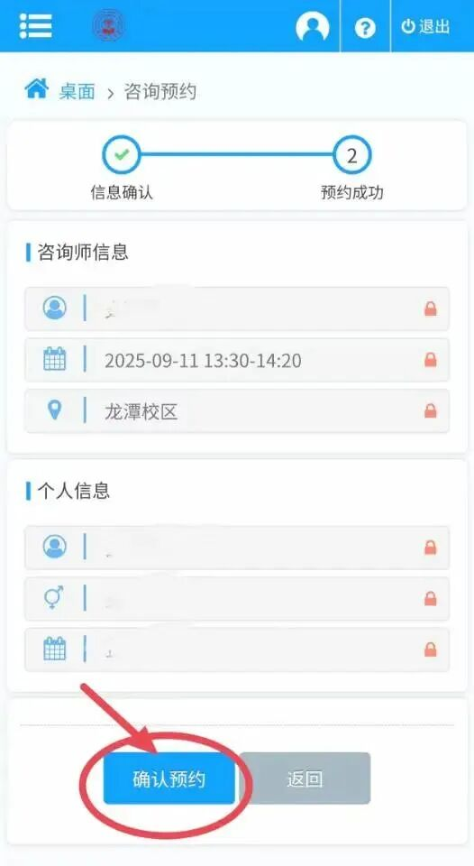 2.填写预约单:根据系统提示填写【咨询预约表单】: