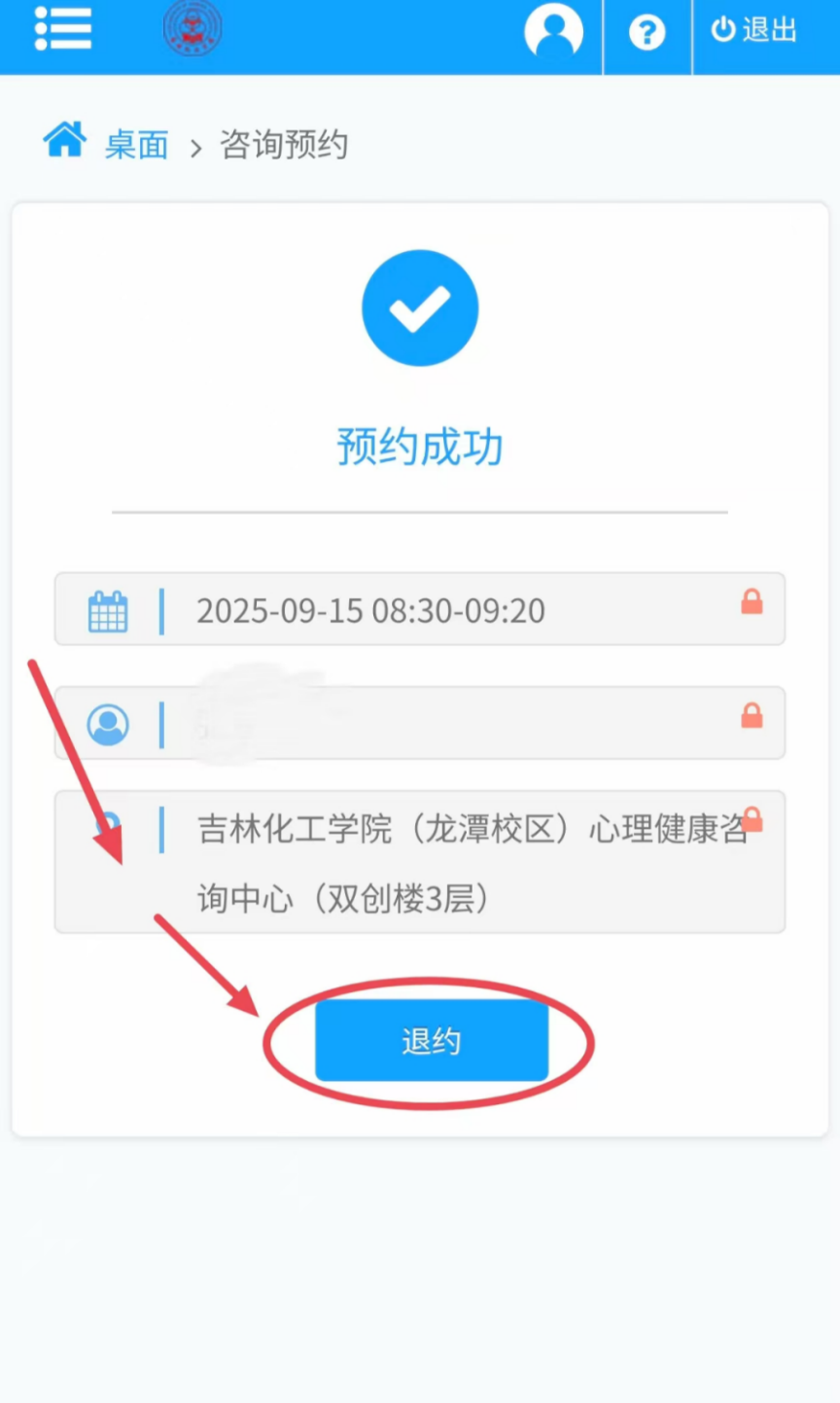 如有特殊情况不能按时参加咨询,请至少提前24小时登录系统,进行退约操作。