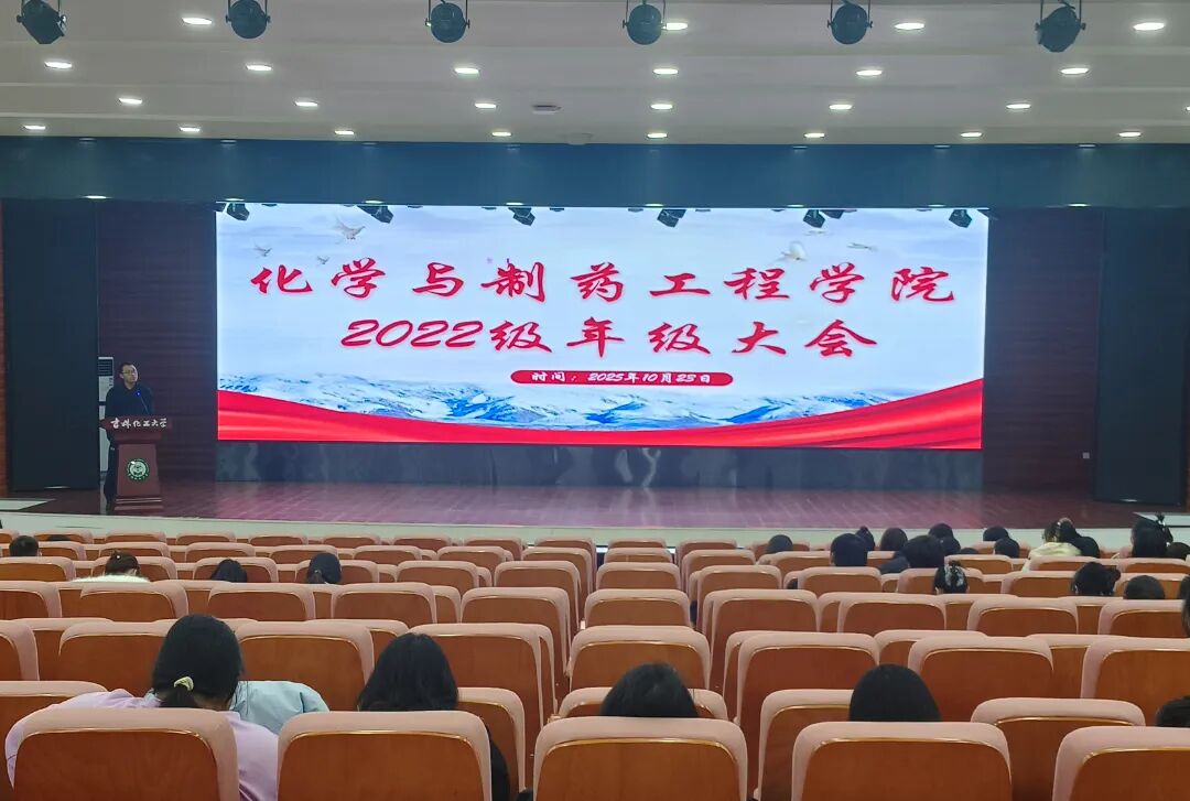 为帮助药化学子精准把握就业方向,掌握求职技巧,明确职业发展方向。2025年10月23日下午15:30分,化学与制药工程学院在第二教学楼报告厅召开2022级年级大会,本次会议由化学与制药工程学院党委副书记郑典亮老师主持,化学与制药工程学院2022级辅导员王泽宇老师以及2022级全体学生参加本次会议。