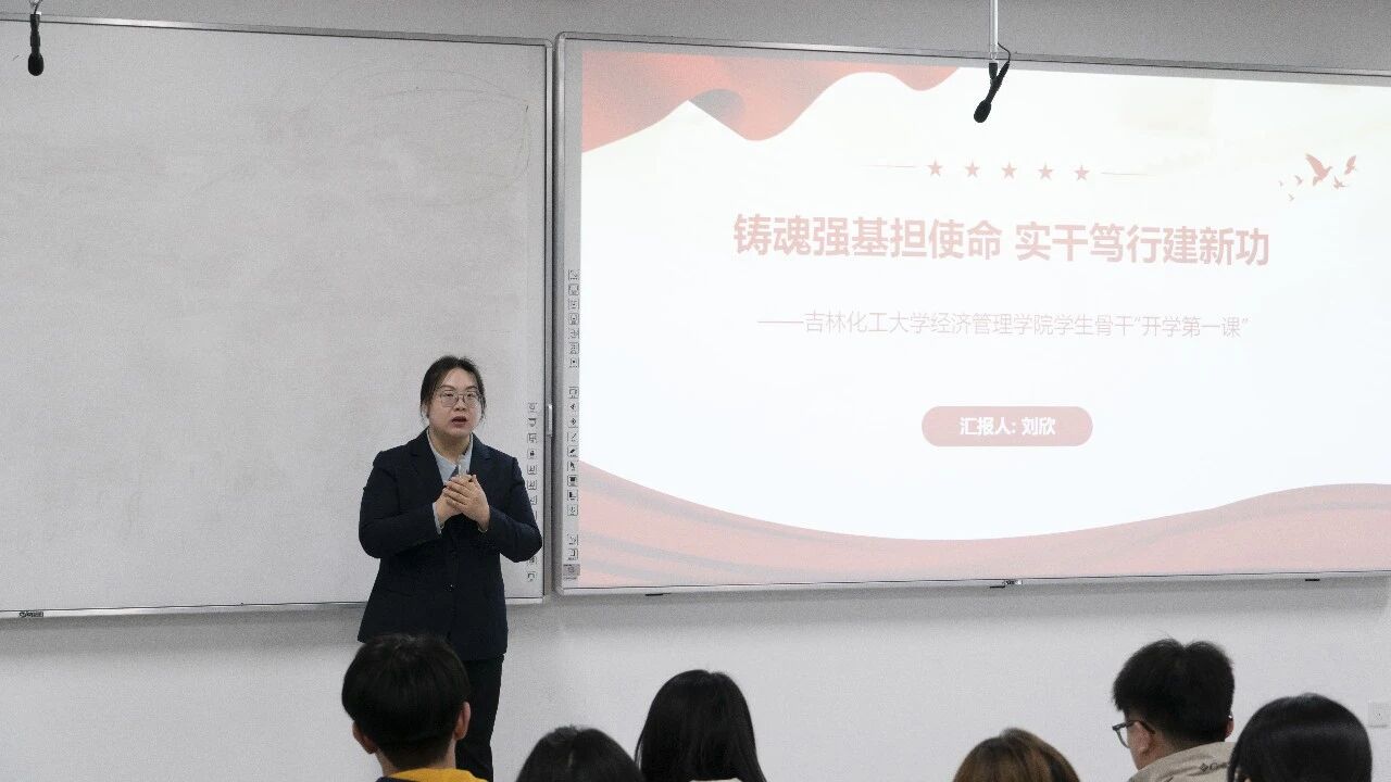 为深入推进学生骨干“提质强基”计划,强化思想引领,提升学生骨干的综合素质与履职能力,2026年4月12日,经济管理学院在九思楼516开展学生骨干“开学第一课”专题学习。马克思主义学院刘欣老师受邀主讲,经济管理学院团委书记王宇晨老师出席活动,学院全体学生骨干参加本次学习。