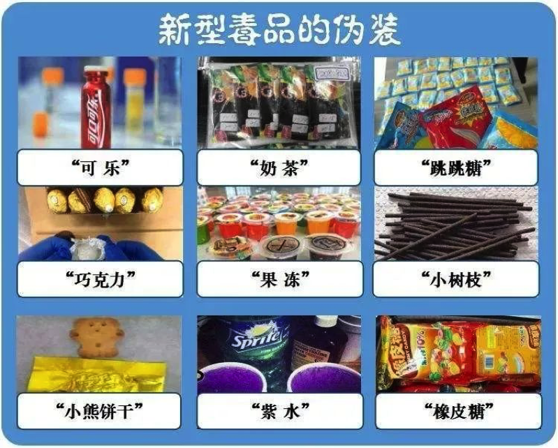 - 新型毒品:伪装成“奶茶”“跳跳糖”“邮票贴纸”等,通过诱惑性包装吸引青少年,常以“不上瘾”“能提神”为幌子,实则毒性更烈。