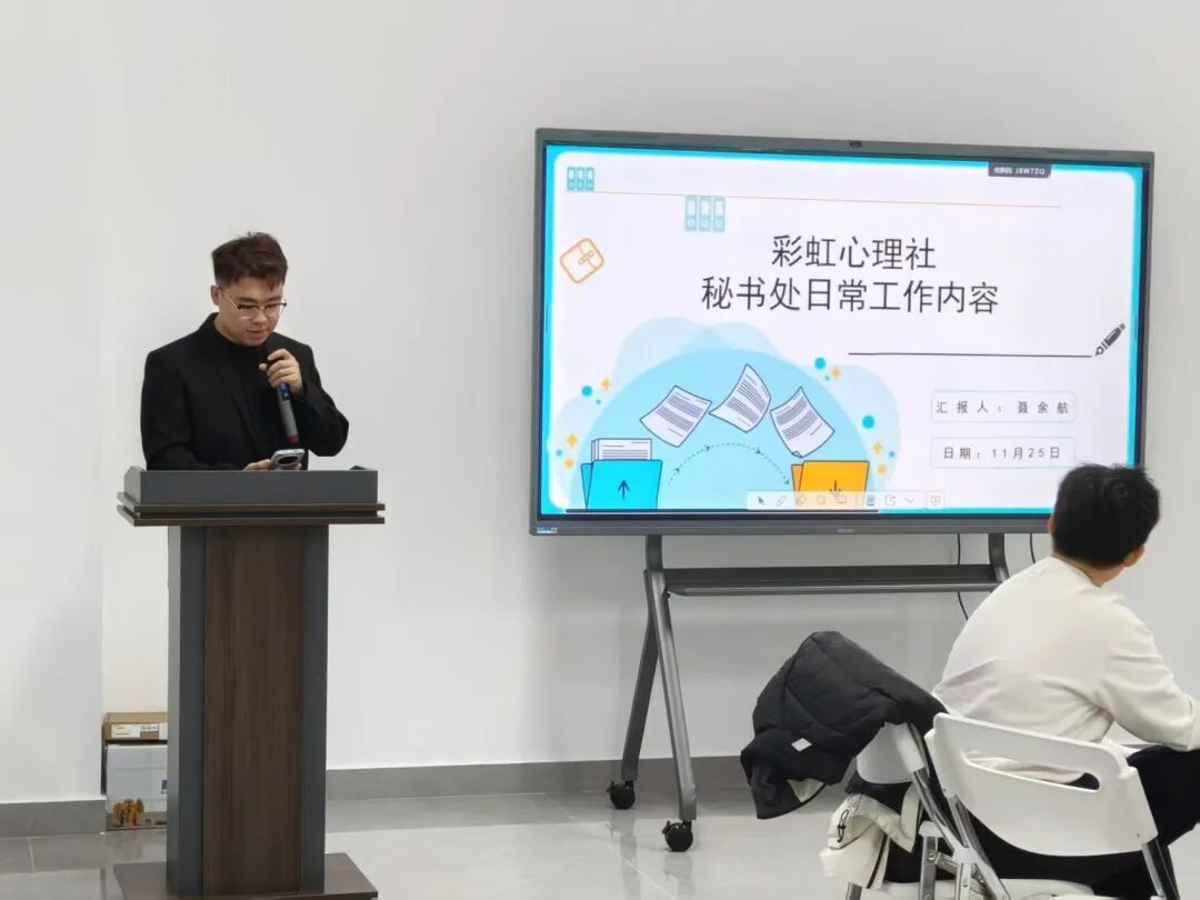 展望未来,彩虹心理社将持续完善服务体系。新社员们通过系列活动实现从拘谨到主动的蜕变,在技能提升与同伴联结中感受朋辈支持力量。社团将创新服务形式,紧密对接学生需求,以专业活动设计拓展心理服务维度,为校园构建更温暖的心理支持网络,让“心桥”惠及更多学子。
