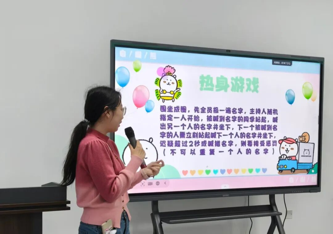 破冰互动环节,同学们通过“姓名速记”“兴趣标签接龙”等趣味游戏,快速打破人际隔阂。青春同伴教育部部长张月然引导成员分享加入社团的初心,结合心理学中的“自我暴露理论”,鼓励大家从基本信息延伸到性格特质、兴趣爱好的深度交流,为后续团队协作奠定信任基础,让新成员在轻松氛围中实现从“陌生人”到“伙伴”的转变。